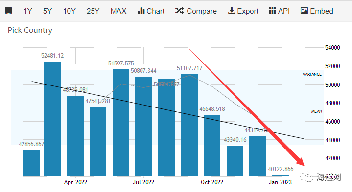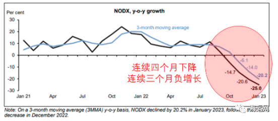 香港最大的竞争对手——新加坡,其外贸情况怎么样呢?2023年1月份,新加坡关键的非石油国内出口(NODX)同比大跌25%,创2013年以来最大单月跌幅,跌幅大于市场预期,连续两个月跌幅超过20%,并且连续四个月下降。